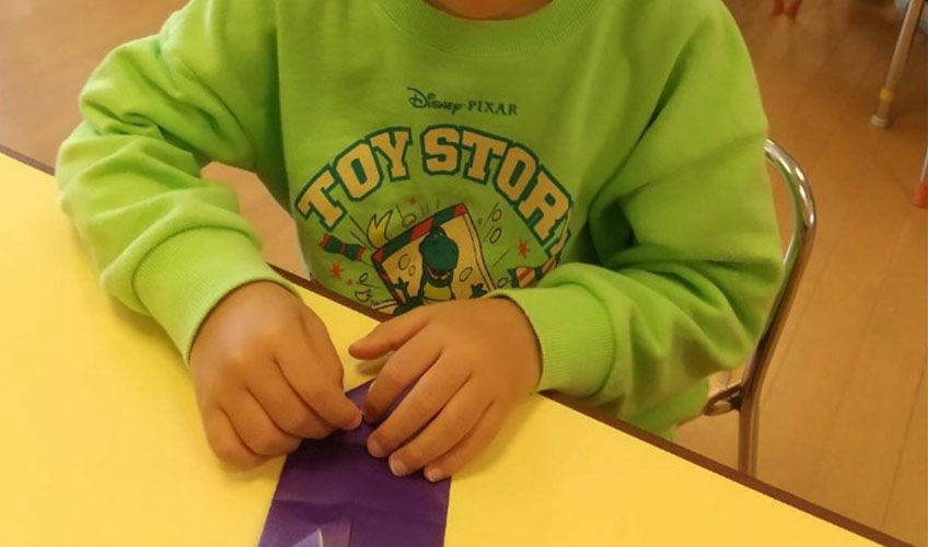 11月の製作は先日芋掘り遠足で実際に見て触れて楽しんださつまいもを作りました😁「あっ!この間掘ったやつ!」と会話しながら折り紙で袋折りに挑戦!!苦戦する子も多かったですがなんとか最後まで折りきりました✨