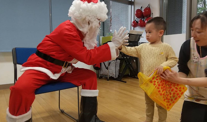12月24日にクリスマス会がありました✨🎄✨ 先生の出し物では部屋を暗くしてお家に光が点ったりと子どもたちは興味津々! サンタさんへの期待感が高まります。 そこへ、本物のサンタさんがプレゼントを持ってやってきました! 一人ひとりプレゼントを貰い、嬉しそうな子どもたち☺️ みんなで写真も撮って、とっても楽しい会になりました。