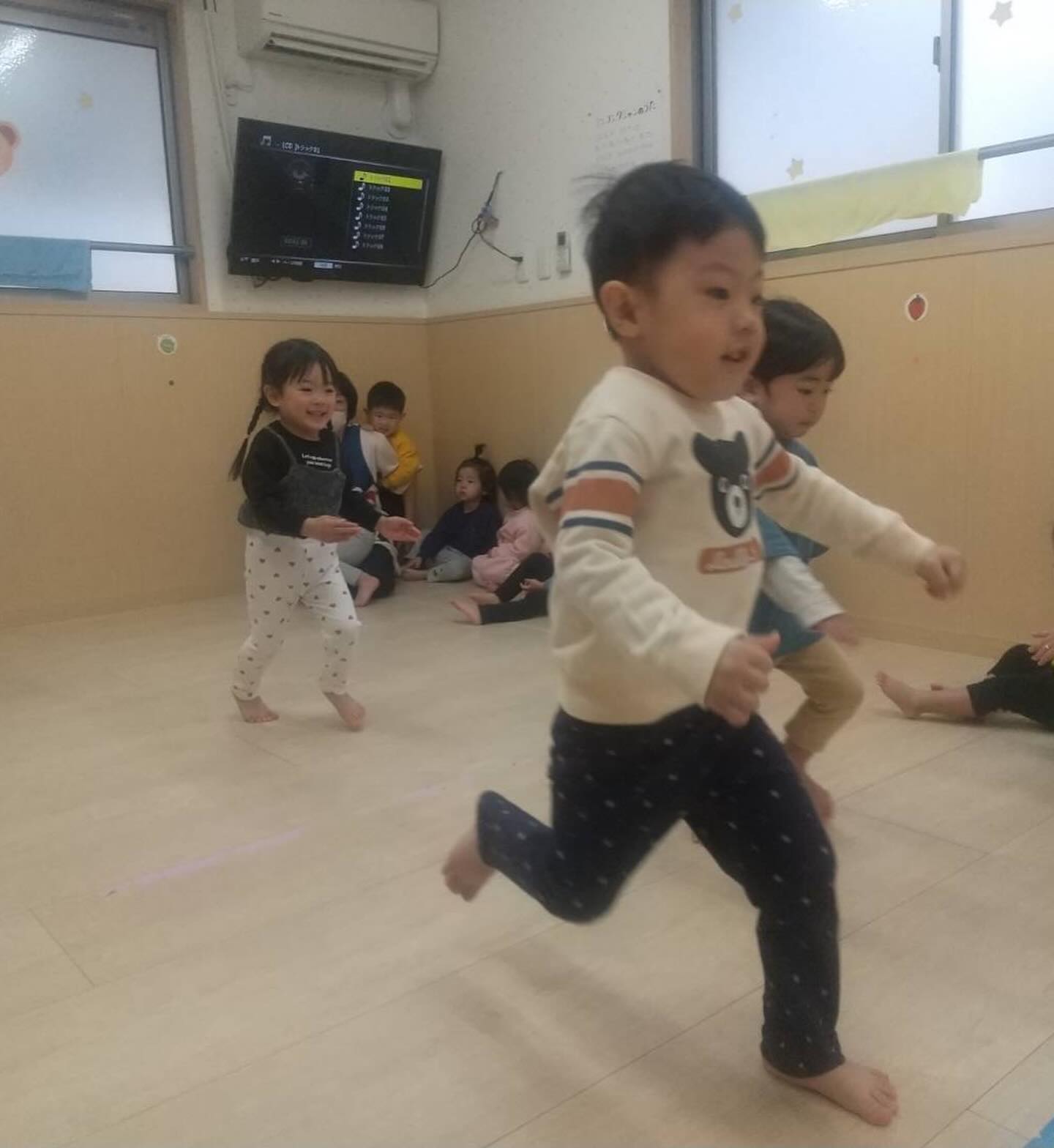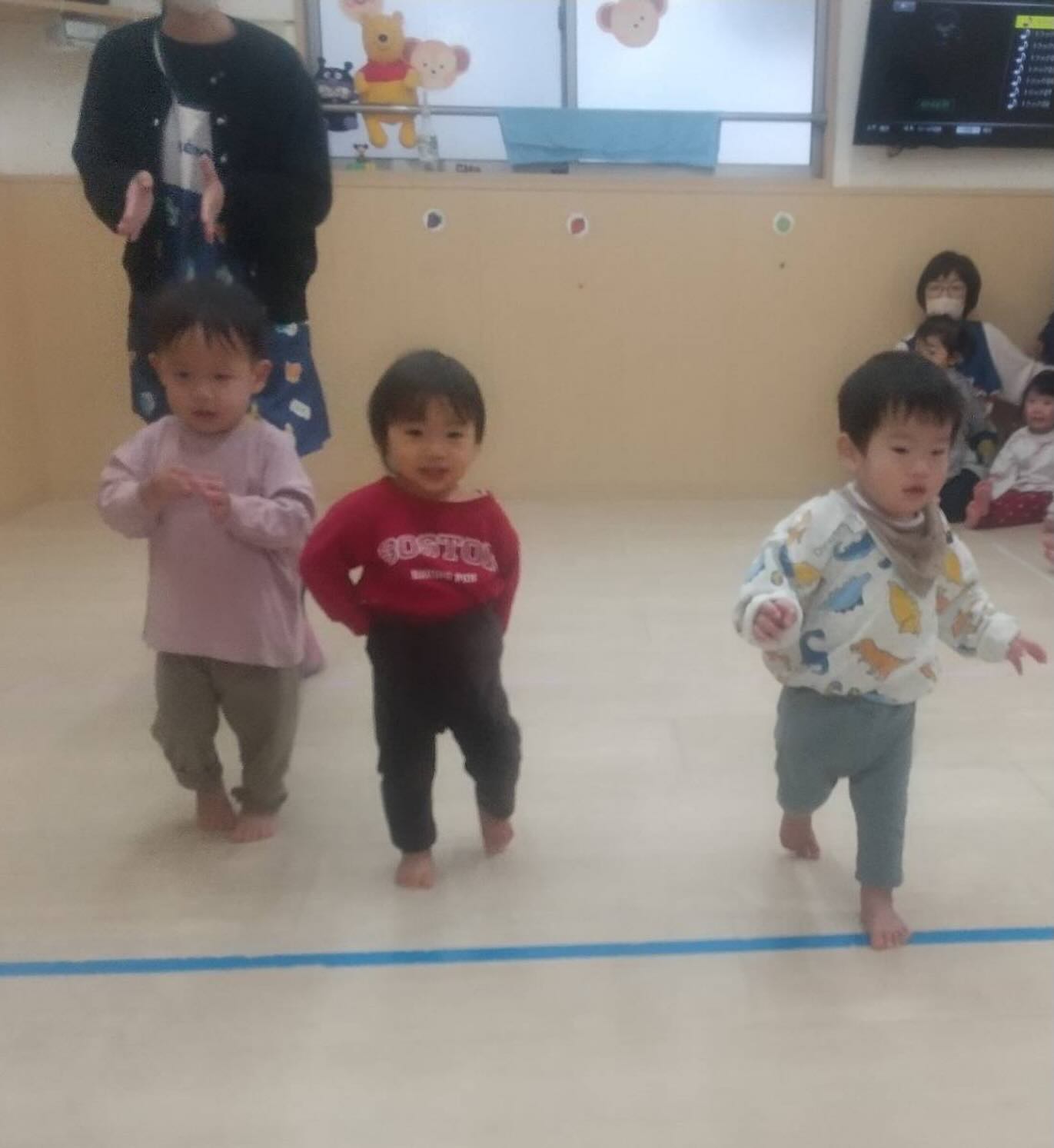 明けましておめでとうございます。 今年度も残り3ヶ月になりました。たくさんの思い出をみんなで作っていきます。 お正月明けから、ほぼお休みもなく元気に登園してきてくれました。お家で練習してきたのか、元気な「明けましておめでとうございます❗️」の声が聞かれました。 お部屋では、色々なかけっこに挑戦しました。きちんと説明を聞いて取り組むことができました。 2歳児さんは、新しいダンスを練習して、0、1歳児さんたちに披露しました。すぐに覚えてとても楽しく踊れました🕺💃 今度はみんなで踊ろうね😃