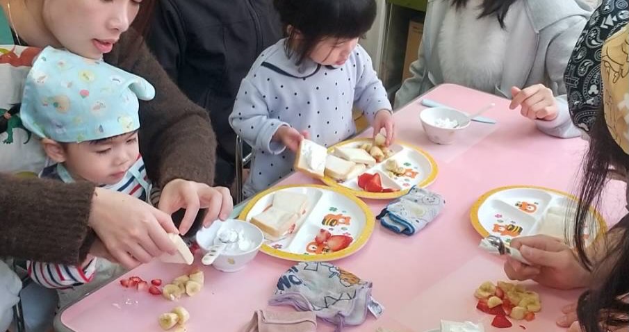 その後は全員でチャレンジ給食でフルーツサンド作り🍓みんなで作ったフルーツサンドをたくさん食べて、とっても楽しい思い出ができました😆